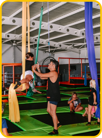 A partir de 21 niños el grupo se divide en 2 equipos, uno de los cuales salta en trampolines mientras que el segundo juega Bubble pool. Luego, los grupos se intercambian.