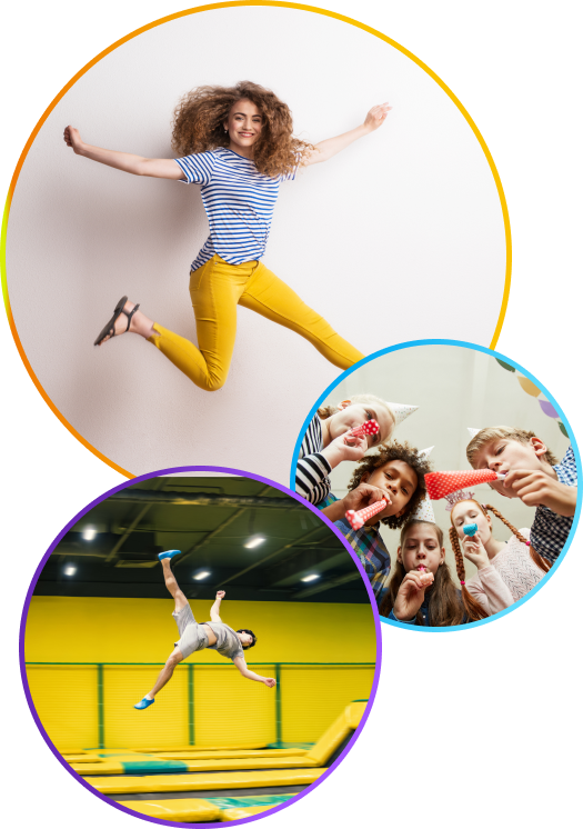 A partir de 21 niños el grupo se divide en 2 equipos, uno de los cuales salta en trampolines mientras que el segundo juega Bubble pool. Luego, los grupos se intercambian.